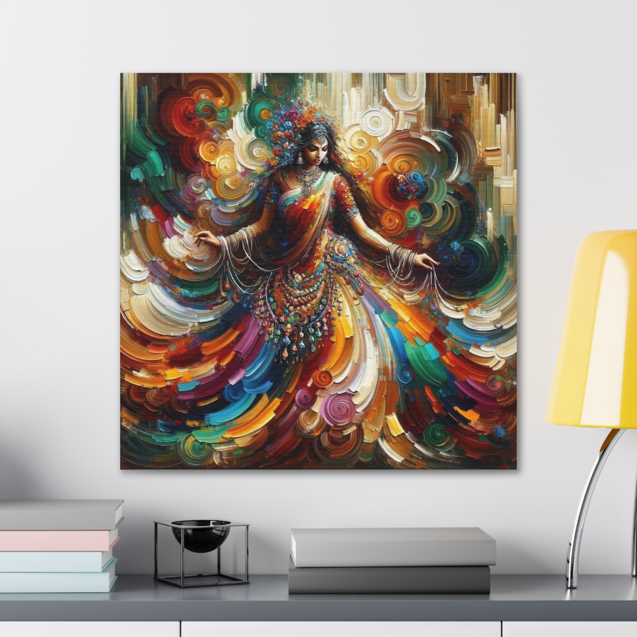 "Vibrant Spice" is an explosion of color and movement, capturing the essence of a traditional Indian dance in a whirlwind of vivid hues and dynamic swirls, showcasing the elegance and energy of cultural celebration.